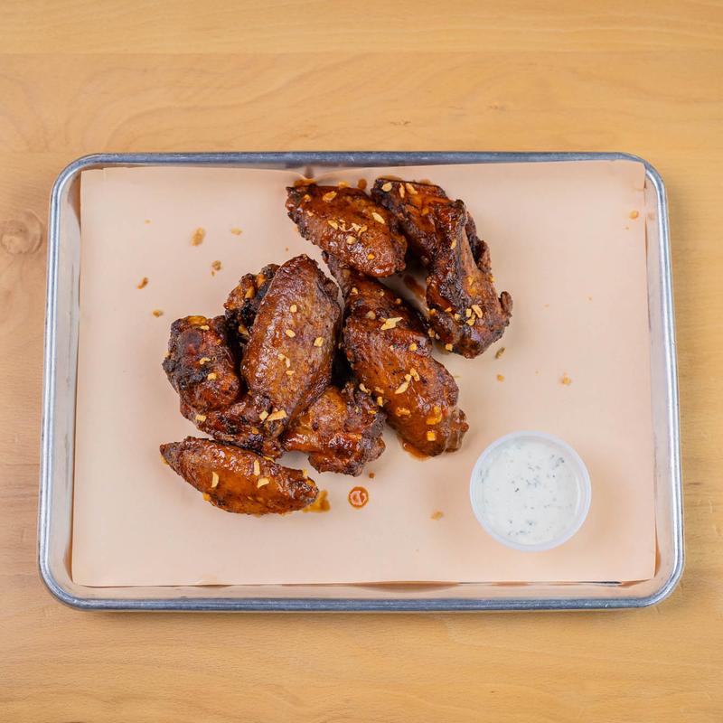 6 Wings $7.50 | 10 Wings $12.00 | 24 Wings $28.00 • Smoked and Quick Fried. Served with Homemade Ranch | Barbecue, Buffalo or Garlic Parmesan